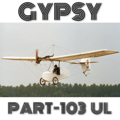 The Gypsy features bolted aluminum tube construction, a wire-braced wing with a span of 32 ft (9.8 m), with the ground wires supported by a kingpost. The wing is of aluminum tube construction, with foam ribs and a covering of doped aircraft fabric. The design has a standard empty weight of 165 lb (75 kg) easily allowing it to qualify for the US FAR 103 Ultralight Vehicles category, with its maximum 254 lb (115 kg) empty weight requirement. The initial engine was a two stroke powerplant of 25 hp (19 kW) and the recommended power range is 20 to 25 hp (15 to 19 kW). The engine is mounted on the overhead keel tube in tractor configuration.