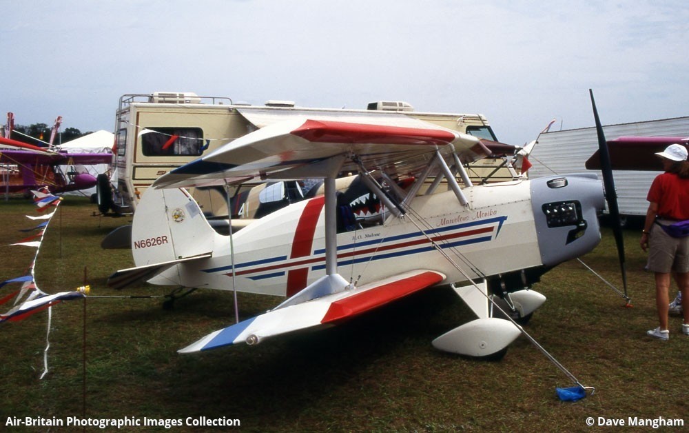 The H-2 Honey Bee is a lightweight aerobatic biplane first flown in 1986. With the H-2, designer Bert Howland introduced the technique of TIG-welding the fuselage from square 6061-T6 aluminum tubing, yielding a strong and rugged fuselage frame that weighs only 24 pounds.